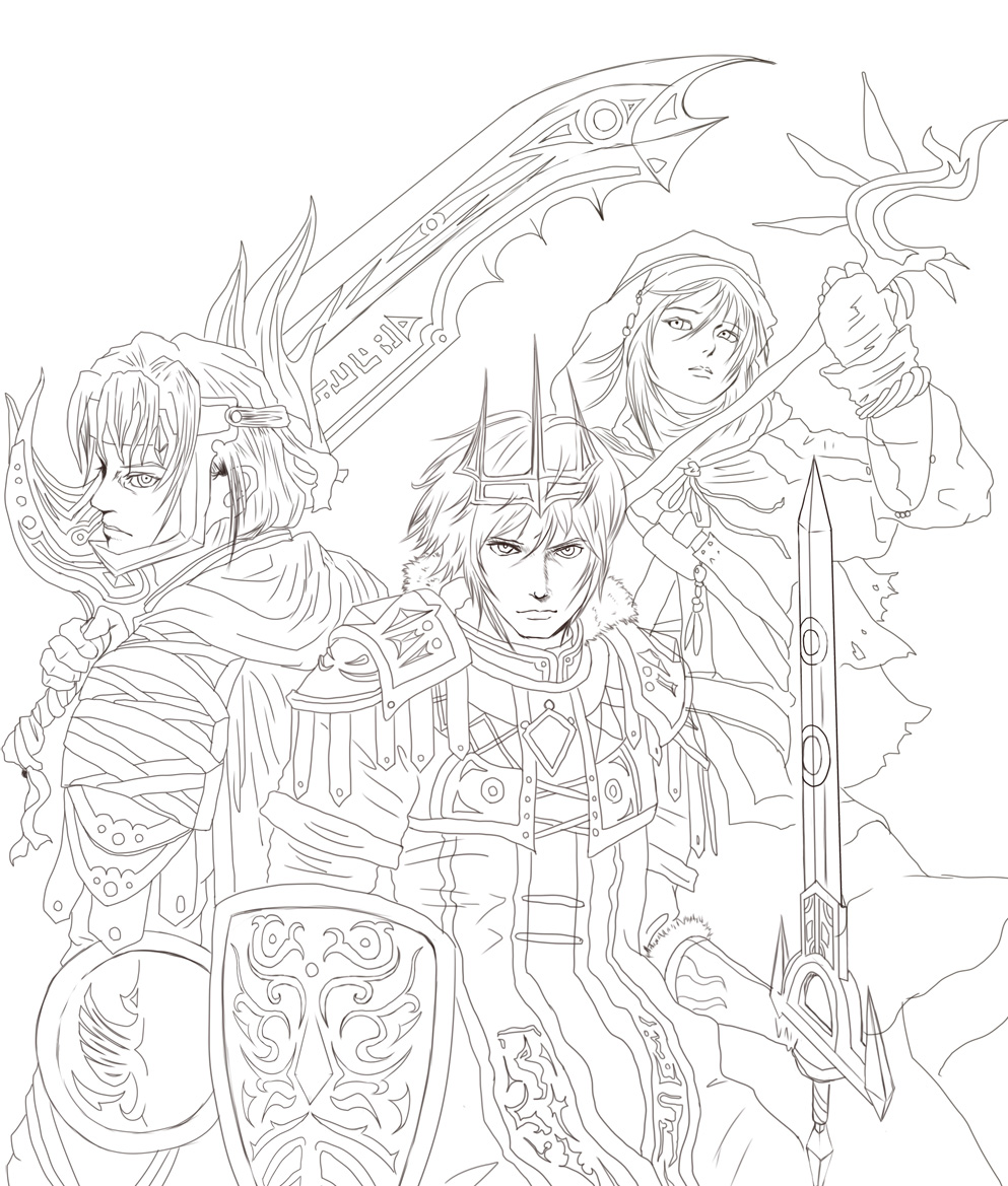 したの方に置いてあるダクソ2からの絵、色塗り。